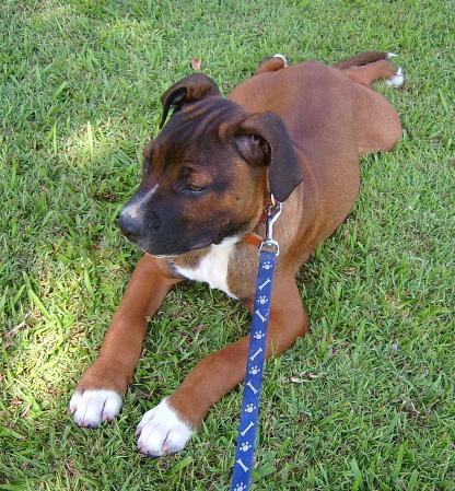Dempsey is a large lovable puppy who is very boisterous and clumsy, his big feet just seem to get in his way!