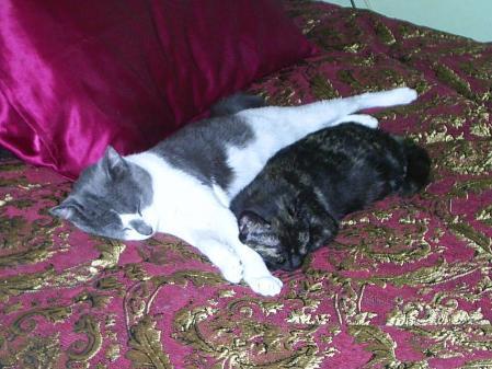 Byron was born approximately 23 may 2008. He has a very gentle nature and likes nothing better than to snuggle up on your lap or on the back of the lounge chair behind you with his paws dangling down your shoulders. He will happily lie beside you for hours on end and he is very good with other cats of all ages. He is also used to my dog and is not the sort of cat to roam. He would be happy inside with you all day long but has also been outside. This gentle boy will soak up all the love you can give him and will return it 10 fold. He has been vaccinated, neutered and microchipped. The second photo shows him with an unrelated female kitten that he took under his wing when she first arrived at the shelter