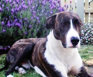 huxley is a very sweet, affectionate dog. He is a puppy trapped in a big dog's body - and sometimes resembles a baby giraffe when he gets his legs tied up. He has had a very sad start to life, but is on the road to being a happy, healthy dog. We are looking for a home that will show him that life can be fantastic and that will give him the love and security that he has missed out on so far in his life. He is a beautiful soft natured boy who is always wagging his tail. Huxley gets along great with other dogs, and is submissive despite his size. Can you provide him with this home?