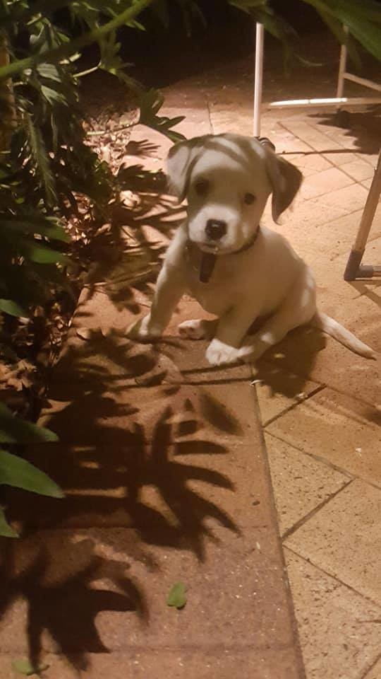 I'm Ralph, a 8 week old male Staffy x puppy. I may be small, but Foster Ma says I have spunk because I am so confident and playful - I love to rough and tumble with my big Foster Fur-Siblings! I am very clever, having already worked out how to use the doggy door, and I also know I should sit before I get my food. Because I am so young, I would love to find a forever family who have the patience and time to continue my toilet training and basic obedience training. I am an energetic pup who would love a home where I will be played with or taken on adventures, and a fur-sibling to play with would be a bonus! In return, I'll give you lots of snuggles and puppy smooches. Look deep into my big brown eyes - how can you resist?!