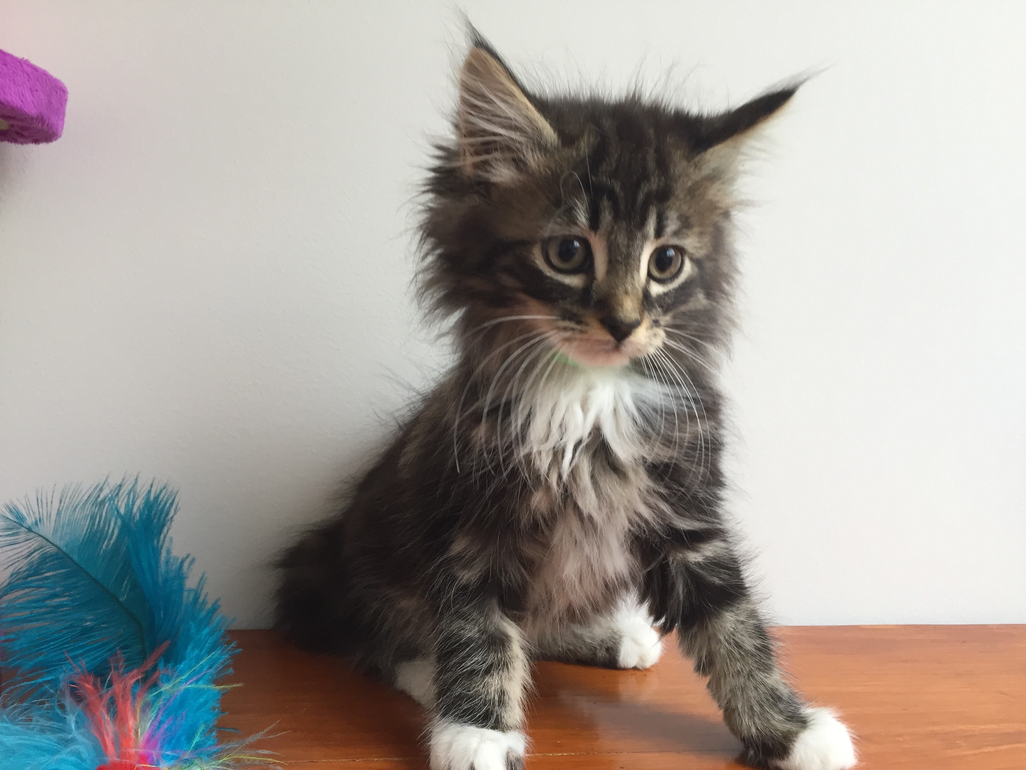 This little fluffball is looking for love! Maui has a beautiful coat with the most unique of tabby stripes and white boots. He is a bit unsure about the big wide world and is looking for someone to show him it isn't that bad! He just needs time and love- he is improving every day but after his scary visit to the pound and being on death row, it can only be expected.