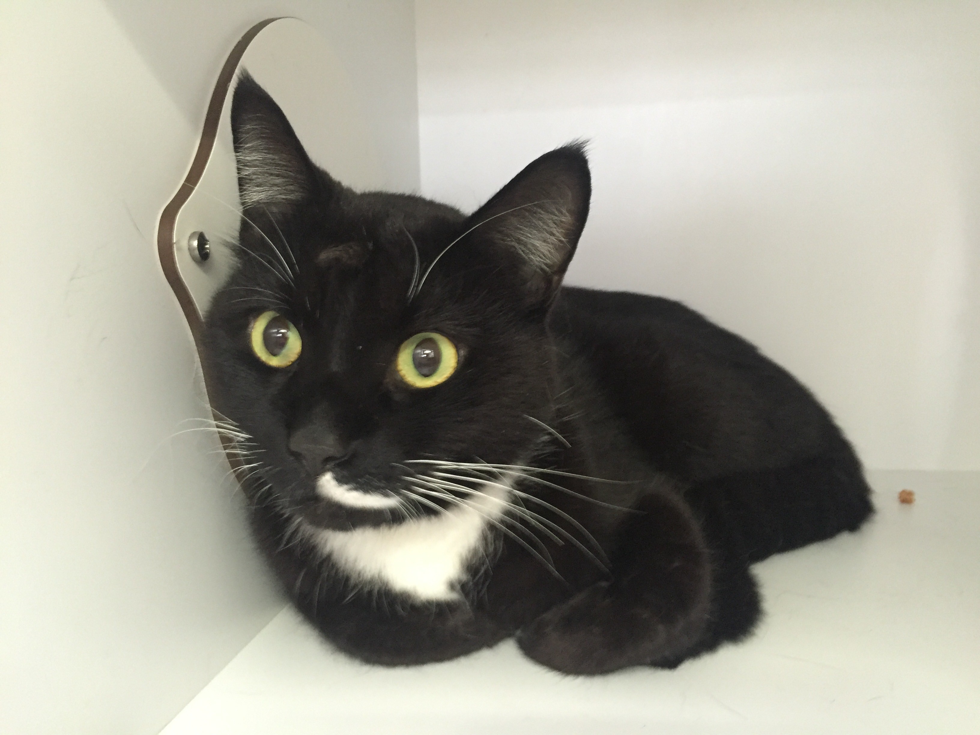 'Ello my name is Arrow and I am a straight shooter. With my sleek black fur and 'Please love me!' eyes I'm definitely the one for you. Come say hi to me today!