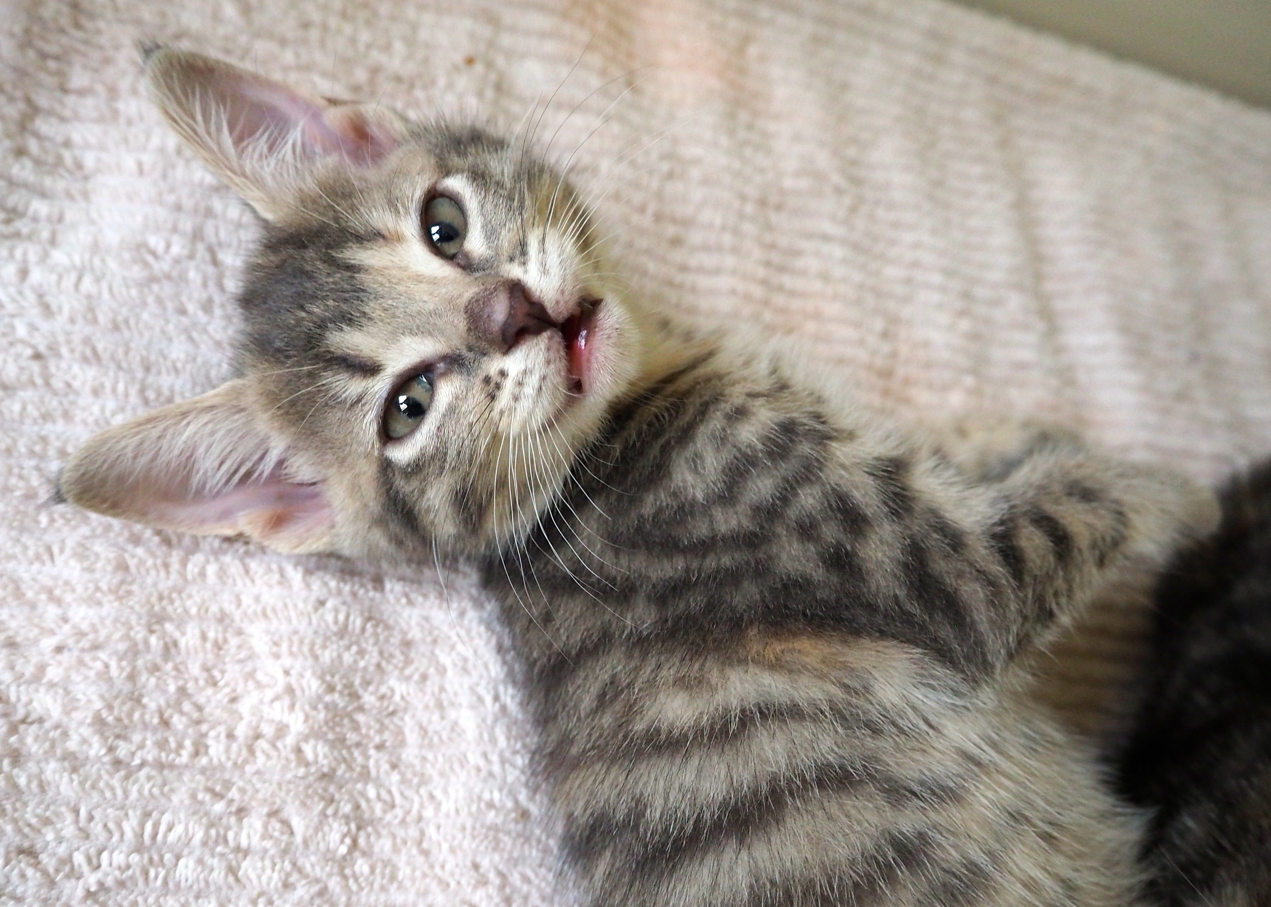 She loves to run up, down and around things and have a fun rumble with her playmates. Milkshake would suit a home with another friend to keep up with her play schedule. Her brothers Milo, Bubbles and friend Millie are also available for adoption, and they all love playing together.