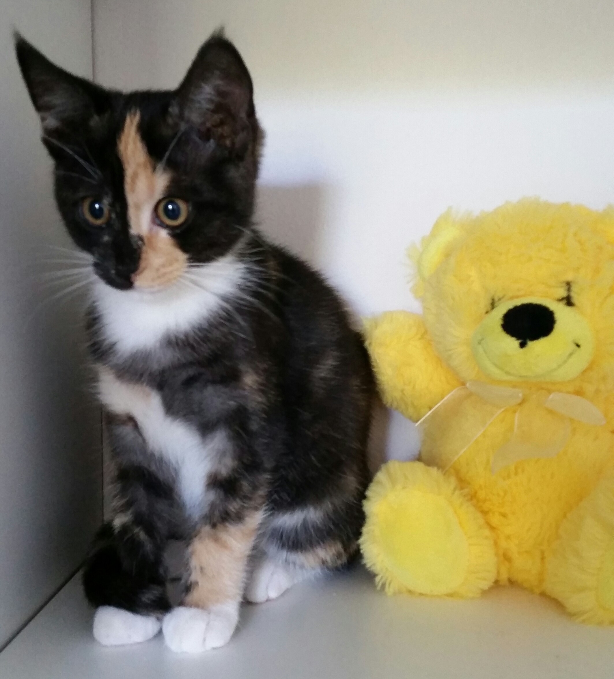 Lady is a sweet, tortoise shell little girl. She is confident, playful and an adventurous kitten. She loves to play with her brothers and explore. She has some great hiding spots. She loves cuddles and play ad to be near you.