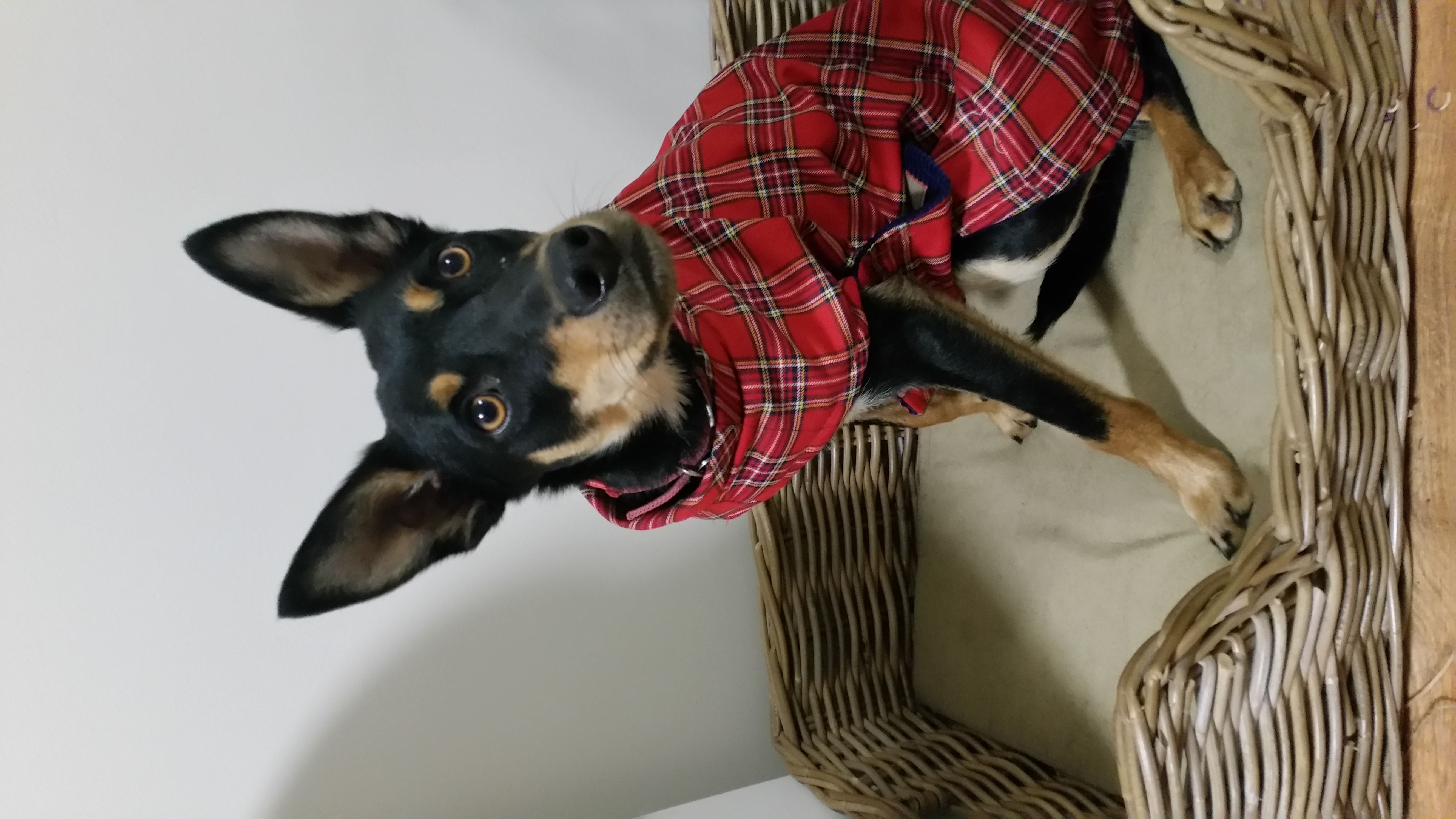 He is a fine type of kelpie. He has classic black and tan markings and kelpie intelligence.