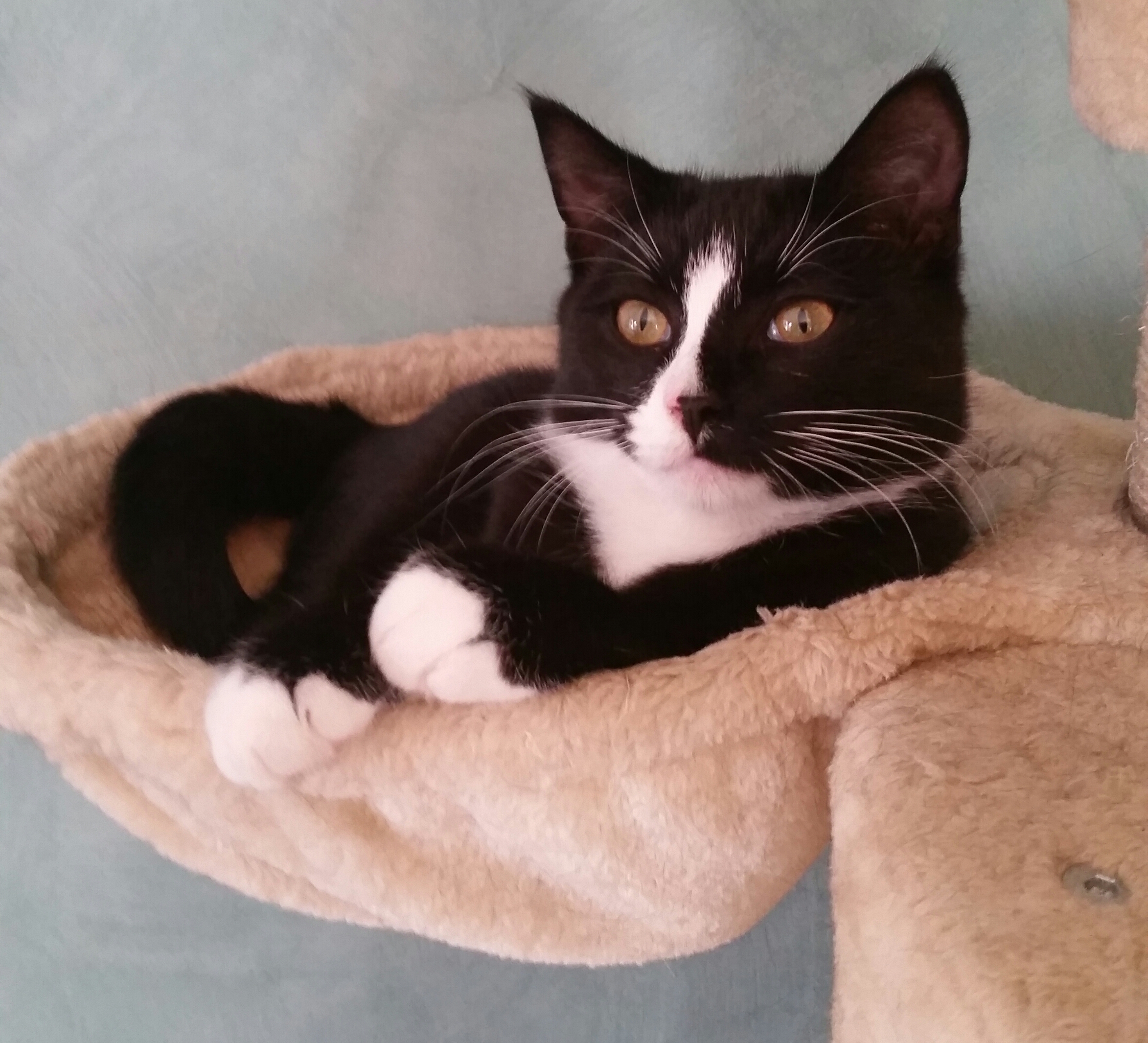 Willy is a gorgeous black kitten with adorable white markings on his face, chest and legs. He is confident, playful and adventurous little boy.