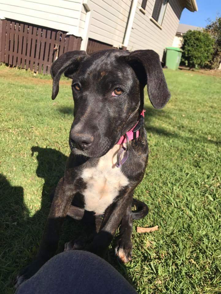 Elara is a little shy at first but she is quick to settle in. She enjoys playing with her toys and doggy friends/siblings and loves playing fetch! She sits on command and is working really hard on not nibbling her people with her shark teeth. She travels well both in the car and on a ute and is responding really well to basic training. She just wants to please her human and loves cuddles right before going to sleep on her own bed. She is in Toowoomba, QLD.