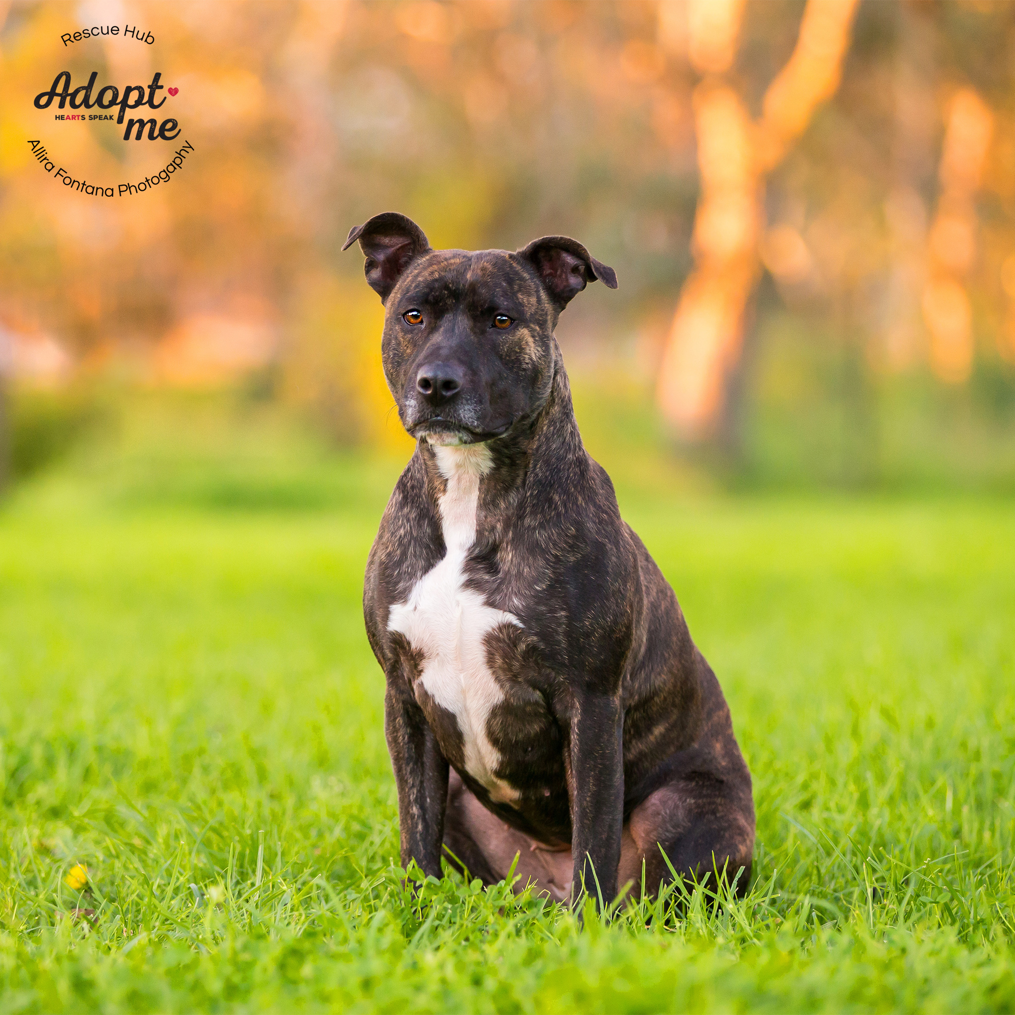 This gorgeous 2 year old American Staffy is a bundle of love! She absolutely adores people of all ages, and has so much love to give. She loves to play with her humans and toys. Although she does love to play, of course, she's also a major chiller and likes to hang out and relax a lot of the day. She doesn't bark and is house trained. She is very obedient and can sit, drop her toy and wait on command (for food, treats, and toys). She also waits politely for permission before hopping onto any furniture so she will not be jumping onto any couches or beds uninvited. She doesn't beg for food or jump up while you're eating either.