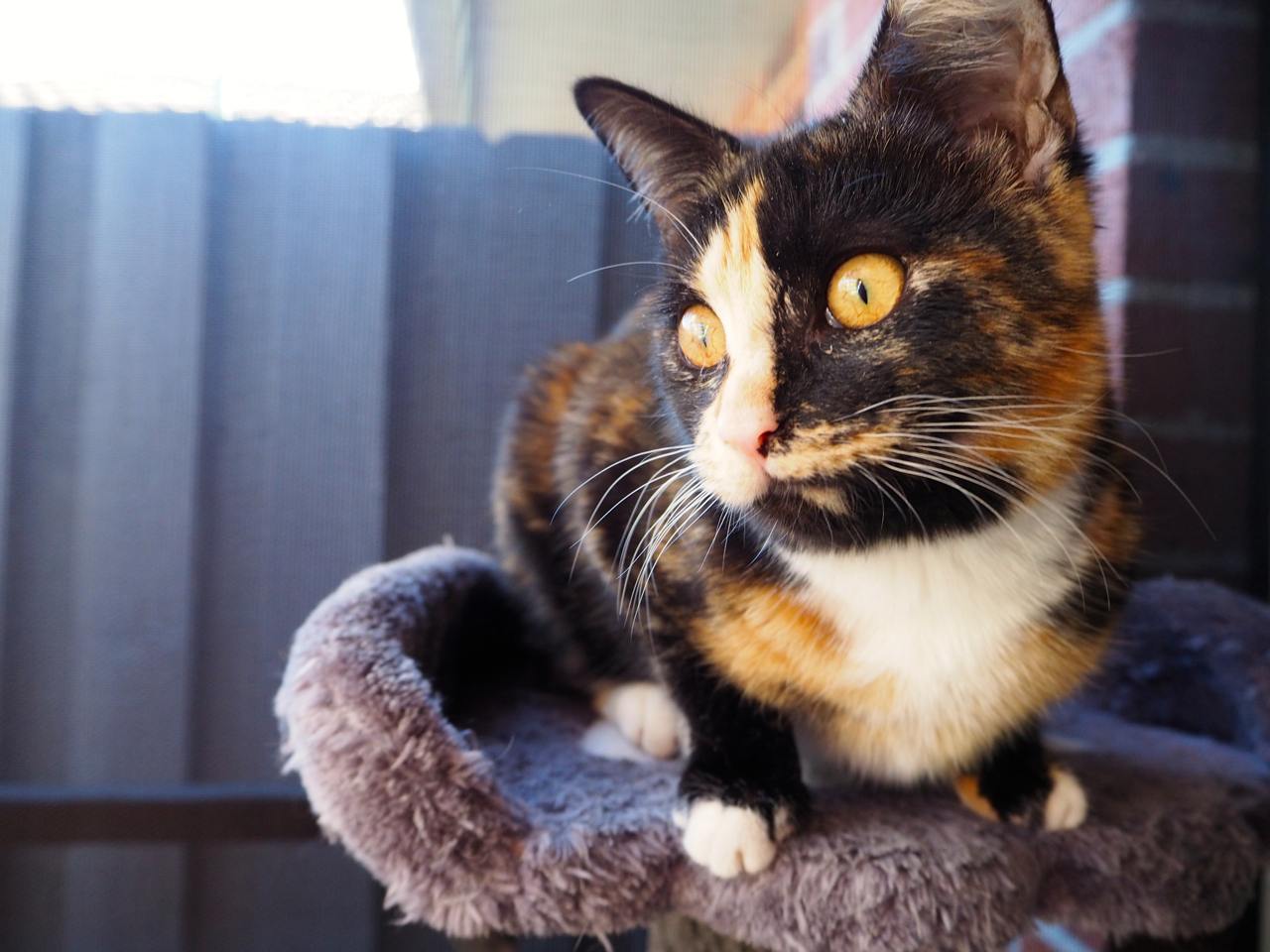 Nutmeg is a stunning tortishell with beautiful markings and soft cuddly coat. She loves to run through cat tunnels, chase things and have a fun rumble with her playmates. Nutmeg would suit a home with another friend to keep up with her play schedule or better still her mum Cammie, whom she loves and is also available for adoption.