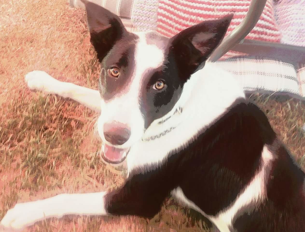 She's just under a year old and a working dog mix so has lots of energy to burn, she loves to run run run, and play with her friends! She's good looking and stands out amongst dogs at the dog park due to her striking colouring and unique look compared to others of similar colours.