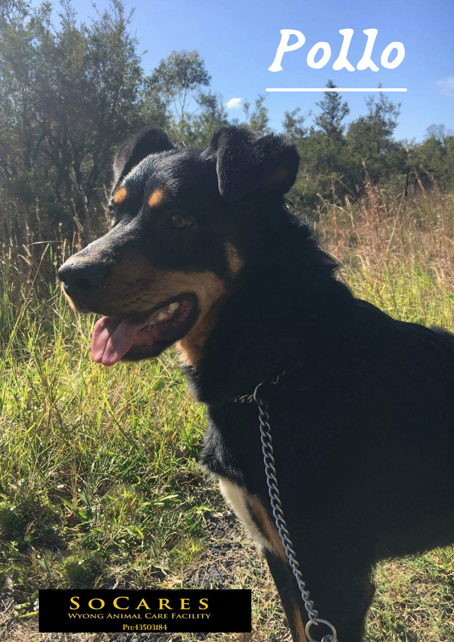 Pollo is an intelligent boy with a lovely tan and black coat. He is an easy going, patient boy who enjoys his walks with his pound buddy Spencer. To keep Pollo happy and healthy he would be best suited to an active owner who will include him as a family member. If you would like to meet Pollo please come into the facility during opening hours.