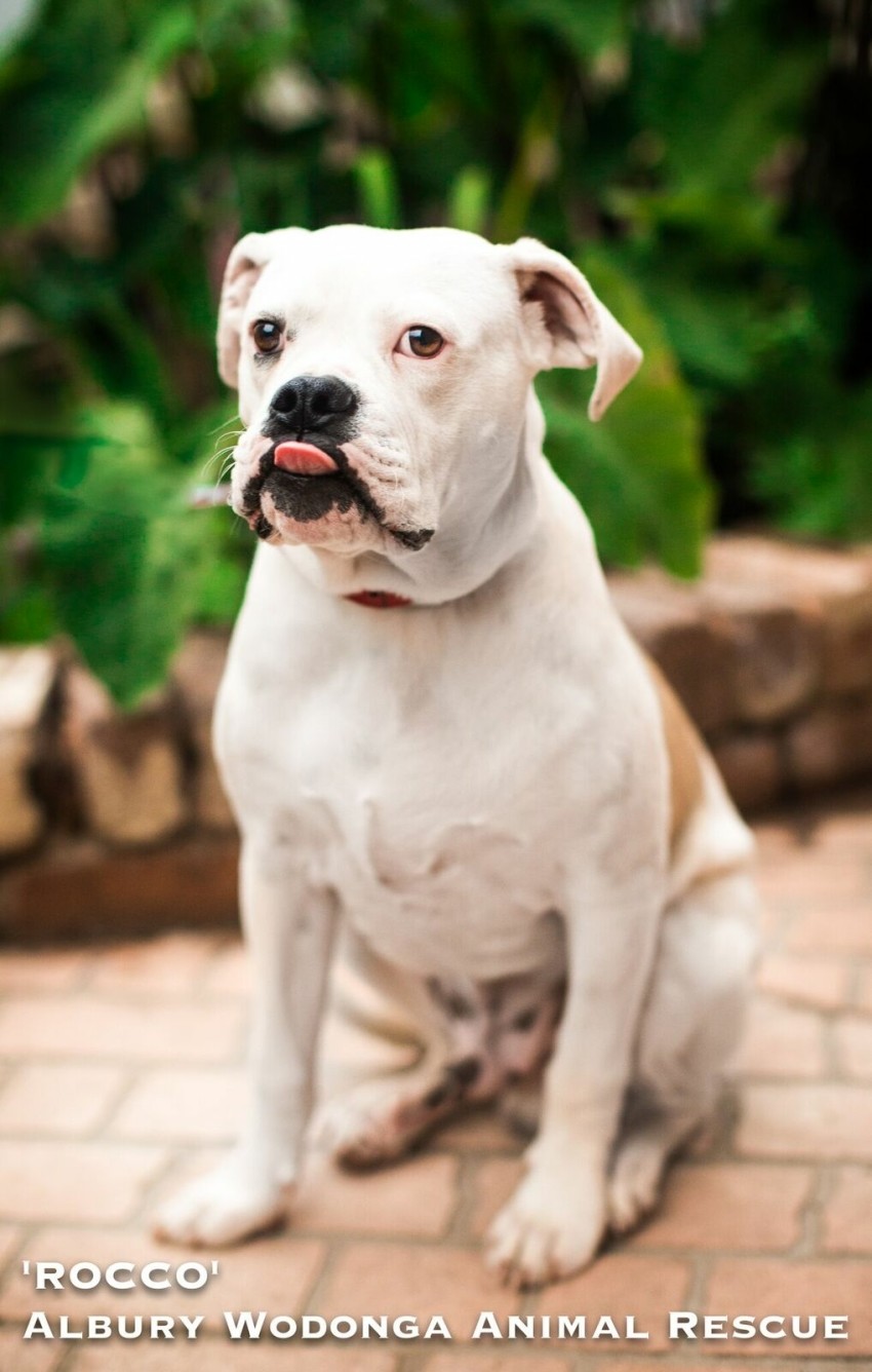 Rocco should be kept out of the hot sun to protect his white skin from sunburn and the risk of skin cancers.