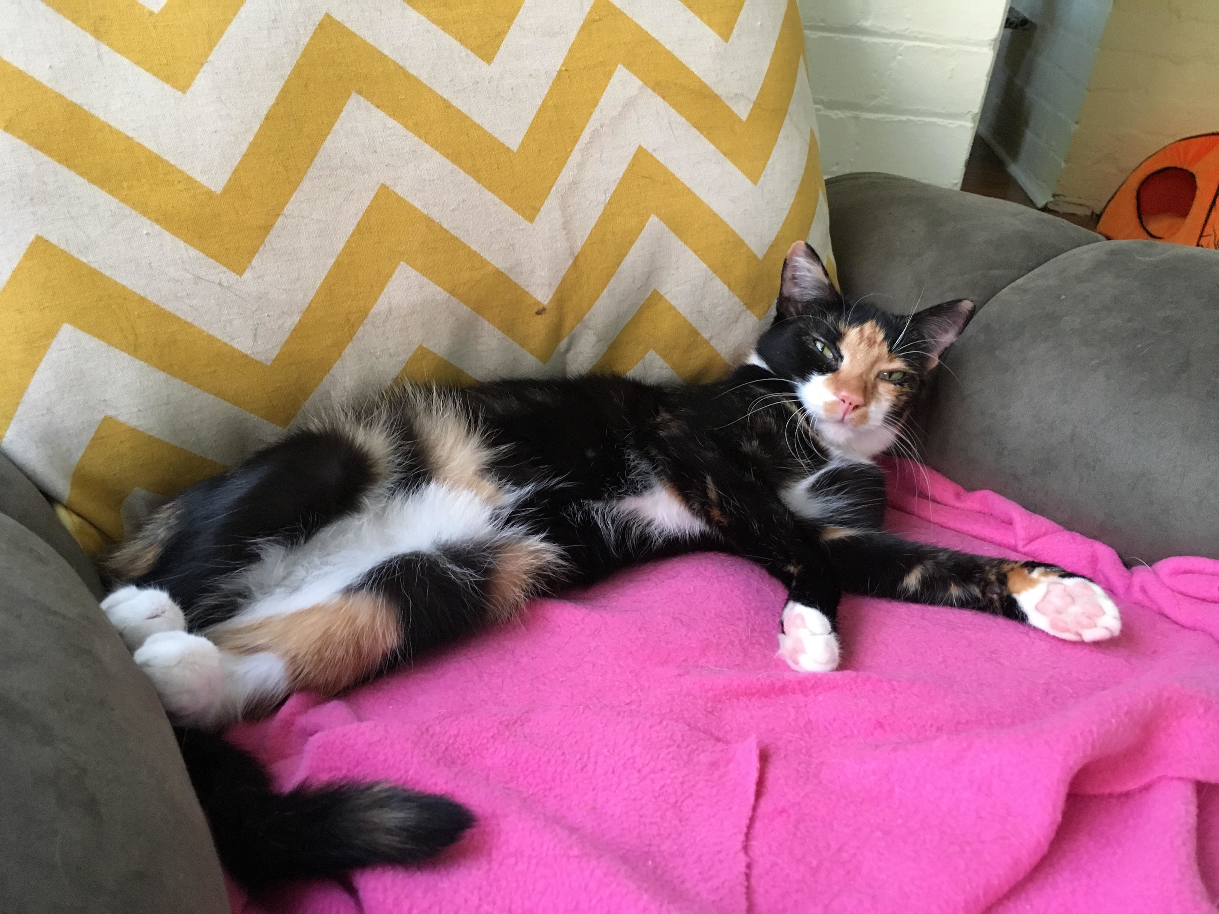 Asha is a beautiful, sweet soul. All she needs in life is a comfy couch or a warm lap to curl up on and she is happy.