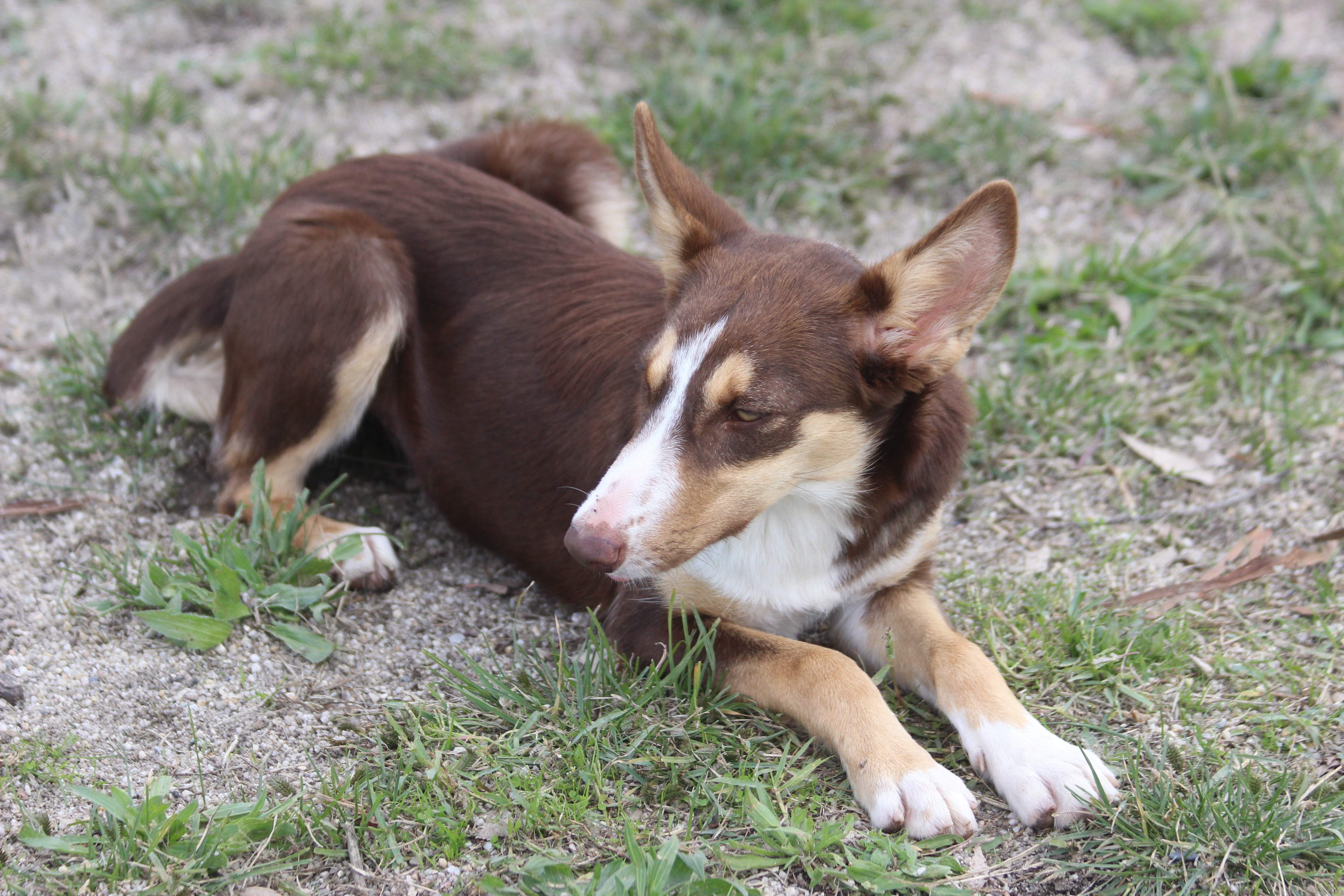 Heidi is a beautiful female 7 mth old border collie X kelpie. She has a broken tail which doesn't cause her any problem, just gives her character. She has a very kind and gentle nature. She is great with dogs and cats and really loves people. She does jump up so possibly not suited to a home with young children. While in foster care she has been an outside dog and doesn't bark at night. She hasn't been house trained, but she is smart enough to learn quickly with time and patience. She does get very excited when you come home. Heidi has been with other dogs while in care and she would be best suited in a home with another dog for company. In the car she does need to be harnessed in, although not a barker she does take interest in passing cars.