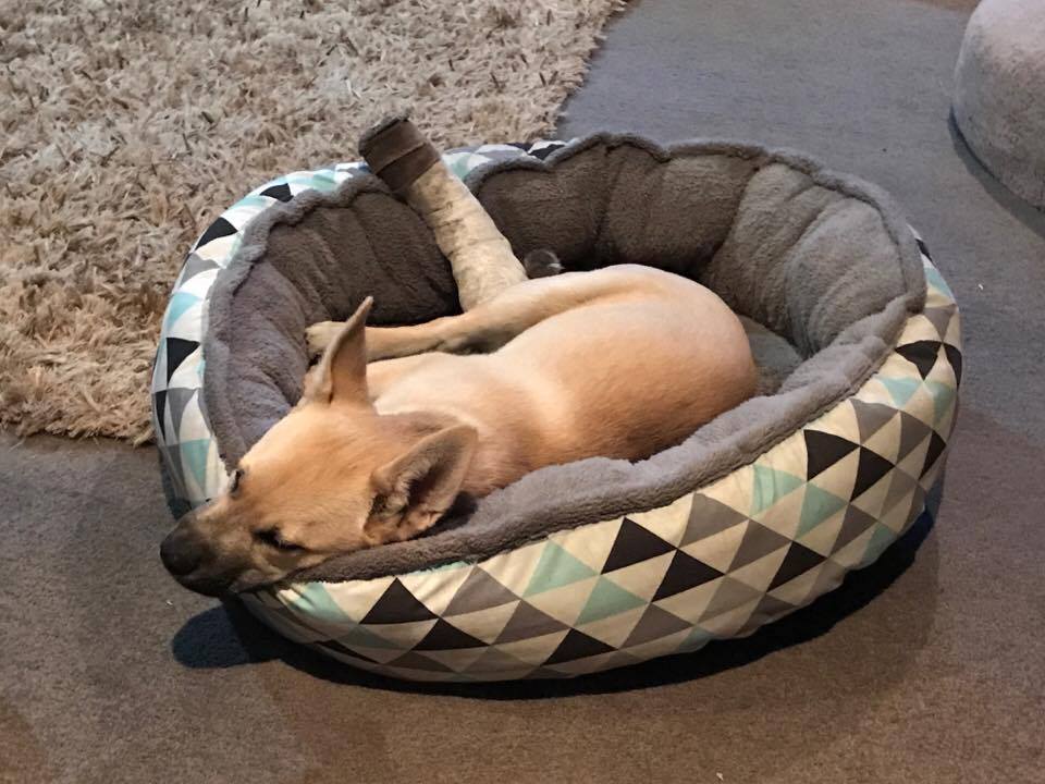 Gromit's ideal home would be with someone who is home a lot of the time or with another doggy companion as he loves other dogs and company. He is a very clever boy and is toilet trained, crate trained & can sit, drop, stay and walks well on a lead with a few reminders not to pull. He is very affectionate and loves a good cuddle with his humans.