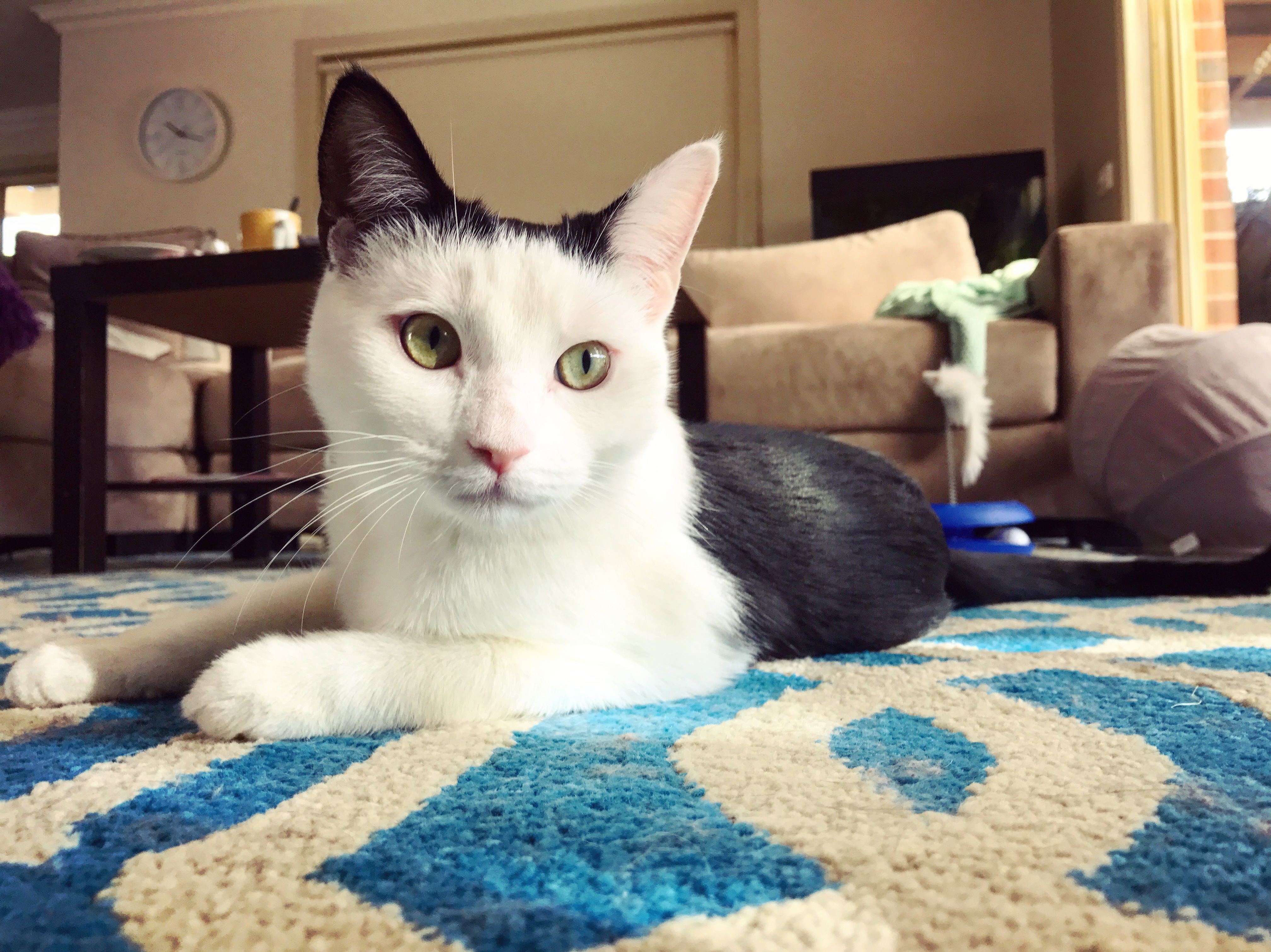He is still a kitten and does from time to time love to be a larrikin and is always up for a play but his real passion in life is napping. Whether it’s basking in a warm ray of sun, spooning with any number of his feline friends or finding that perfect spot on your lap where he can enjoy all of the pats his little heart can handle, naps just make his life complete. He is also a bit of a foodie, always keen to try any and all food items he can get his paws on, even if it’s not on his plate.