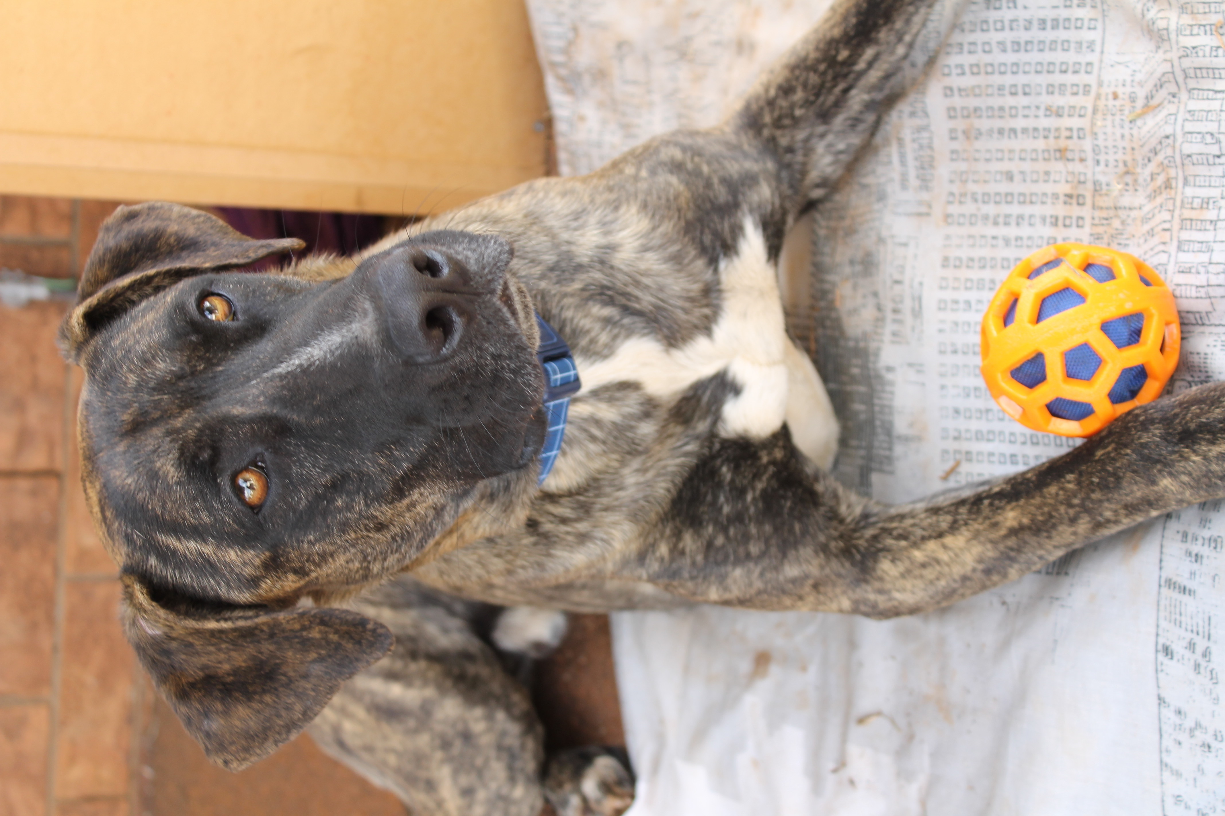 I LOVE to play with toys- balls are my absolute favourite. Throw me a ball, chase me around, give me a squeaky toy. It doesn't matter what you feel like doing, if it is a game I will love it. I need to be a part of a family, so please don't try to use me as a guard dog or leave me outside alone. I am so well mannered you should take advantage of that and allow me to show you what a great member of the family I can become. I like to sleep inside at night, and am house trained- but I am ok to hang outside with the other dog during the day when my humans are at work.