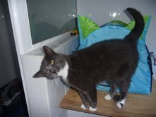 Maddie is a lovely girl, full of character and only about 1 1/2years old. She absolutely loves getting pats and will come straight over to you, looking for more and more pats. She is quite confident exploring through the house, using her scratching post and generally supervising the house. At the moment she shares our house with other cats and dogs and has no problem with them. She is desperately longing to find her forever home