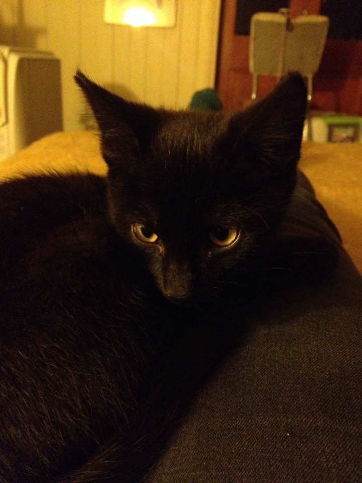 Poseidon is an all black boy who has a face like a little bear. He's very independent and brave. He is generally to be found in the highest and most precarious positions, like walking along the wardrobe rail. He likes to play with toys on strings. He's quite a jumper and would love an adventurous household. Poseidon is litter trained. Poseidon is located at Highgate Hill, QLD.