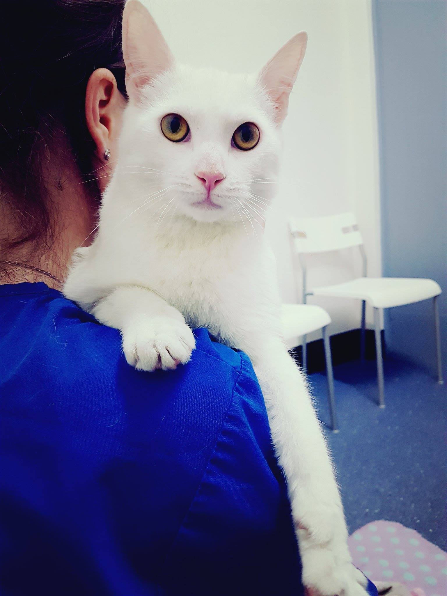 If you are interested in adopting Snow White please call or email our clinic for further information.