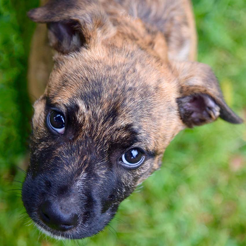 Boris is an 11 week old, male, brindle Wolfhound x puppy. Since coming into care Boris has shown himself to be a kind, cuddly pup who loves being around people. He loves spending time in the yard keeping his foster family company while they play and do yardwork.