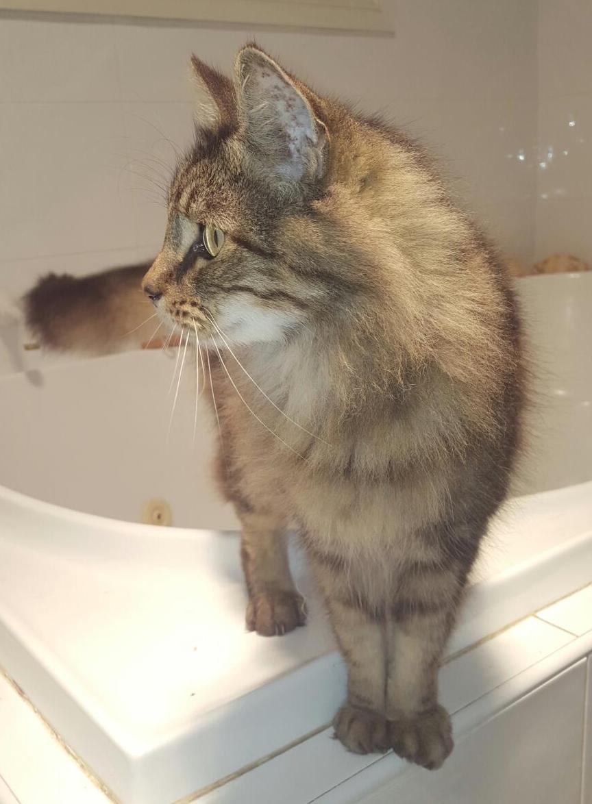 Moey is a beautiful Maine Coon who loves to wander about the house and lounge around with you. He is sleek and handsome, and good with other friendly cats and dogs. Moey is 6.5 years old and has been an indoor cat all his life and isn't able to defend himself in hostile situations with other animals. Because of this he will be adopted to a strictly indoor only home. Due to his beautiful long hair, he will need a gentle brush and groom from time to time to keep him looking his best.