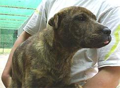 Lucy is a 3 months old shar pei x (possibly mastiff) brindle bitch, who is letting us know what she thinks of the "photo shoot"! desexed before adoption.
