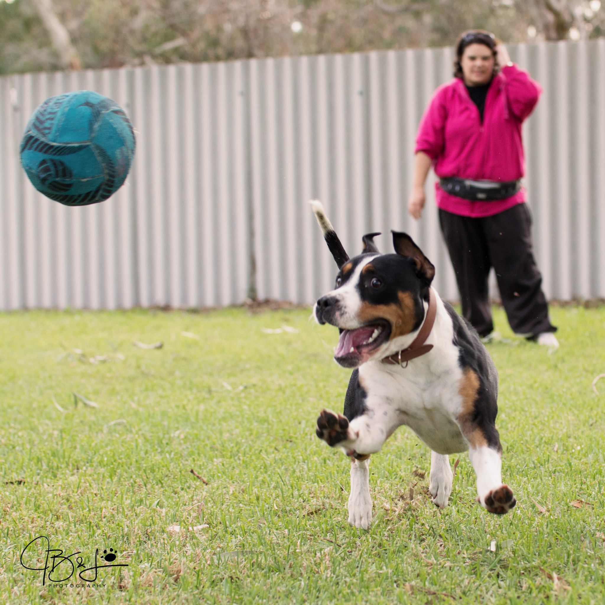 The name is Bryce, and I'm everything you could want in a bloke: handsome, loving, strong, and tough... but I'm always ready for a cuddle! I love to spend time with my people, and it's even better when they play with me. As you can see in my photos, I go mad for the ball, but I also love a good selfie session (hey, I'm a good looking boy & take great photos, what can I say?).