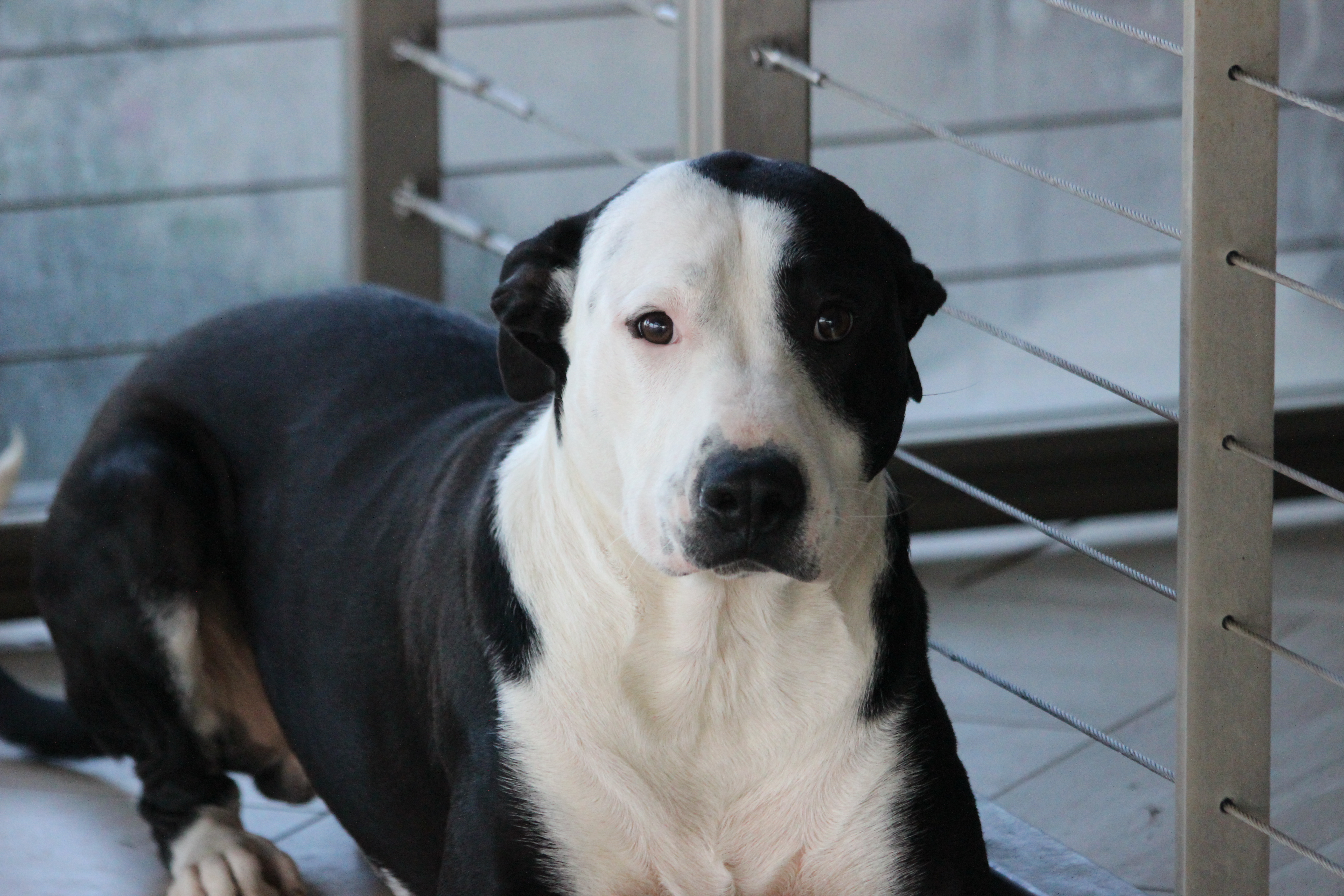 He is just a big gentle giant. Carter loves to chase the ball but doesn't always bring it back. He hasn't been around cats but he does have a high prey drive so I wouldn't have him with cats or rabbits or chickens.