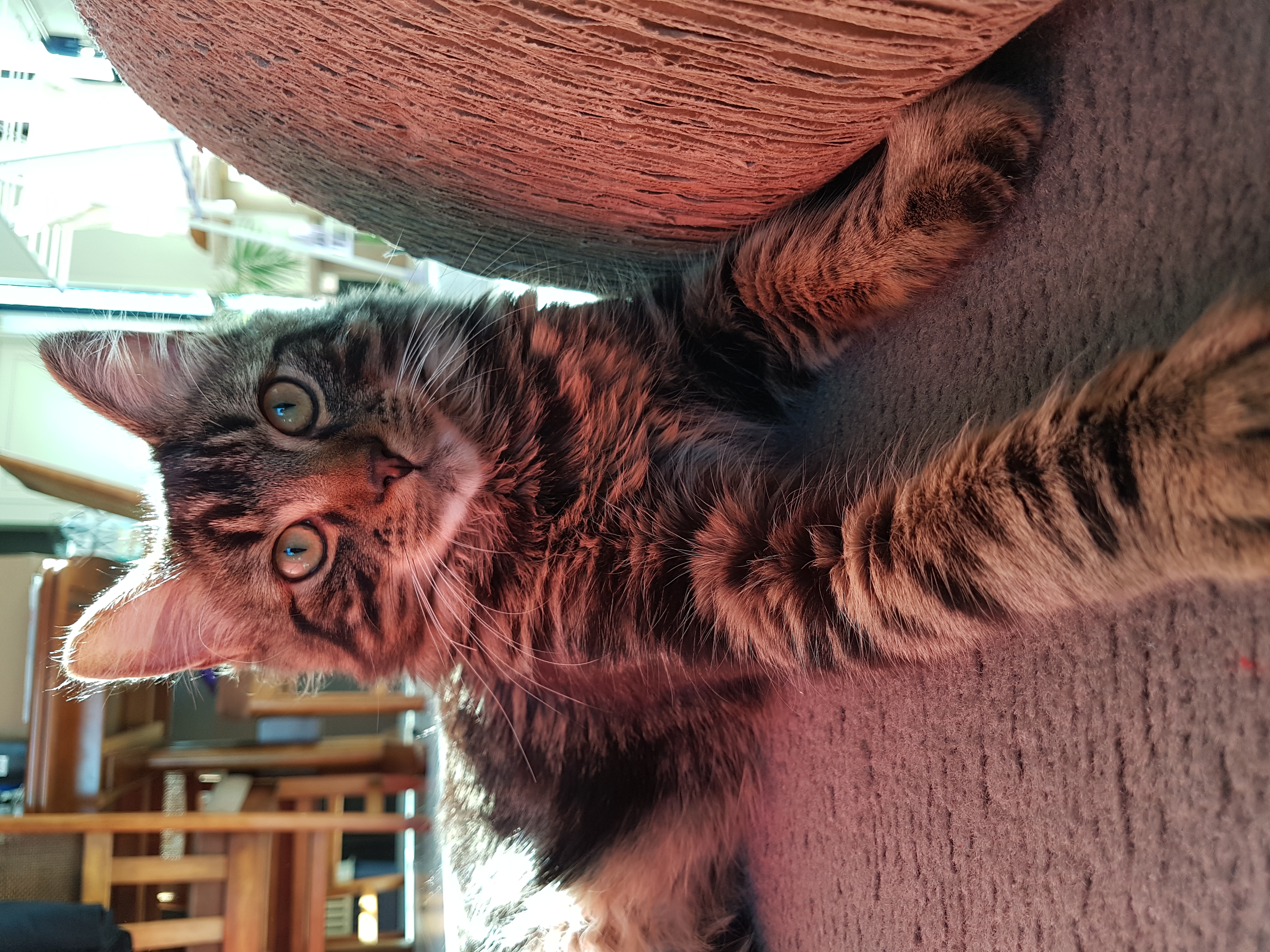 I like to spend my time equally split between play time and sleeping. During playtime I will run around the house entertaining myself and carrying my toys around, or if my human is keen to join in then I will chase the fish on a stick or the lazer pointer until the batteries run out!
