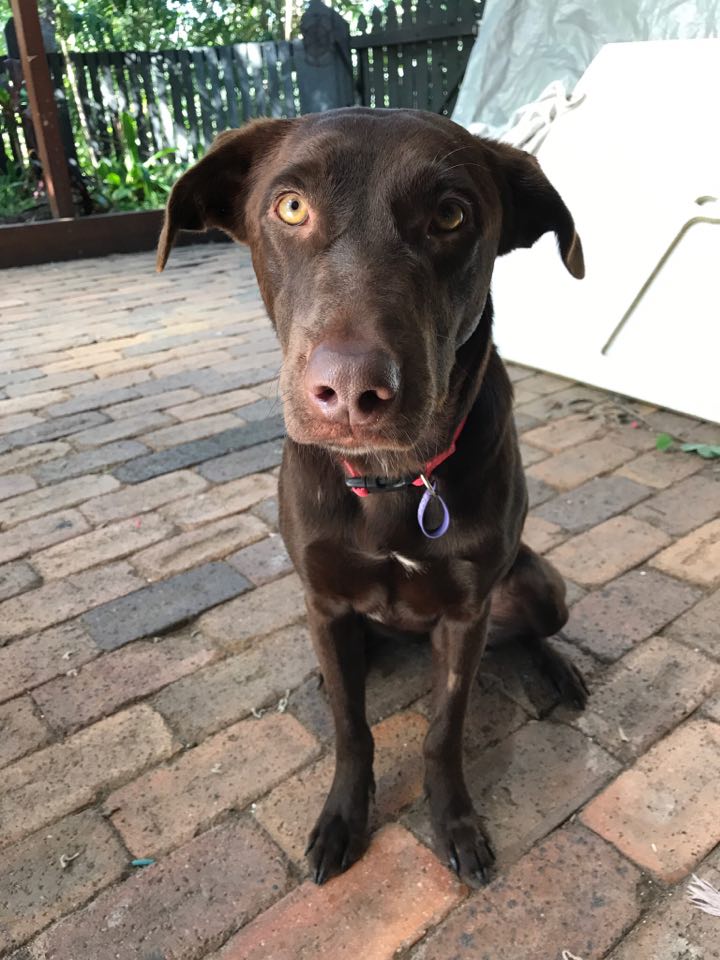 Tess is a beautiful gentle girl who easily adjusted to a house with a large, boisterous border collie, grumpy old cat, two young, loud children and renovations! No problems. She does not jump fences nor digs and is happy both inside and outside. Though if you're inside she will want to be with you. Tess is now house trained and is sitting more readily on demand. She has not been tested at the dog park but gets on well with the dogs on either side through the fence. Tess would love to find a family that will let her snuggle with them inside and take her to the park to play her favourite game of fetch! Tess is located at Bellbowrie QLD