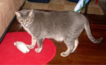 Sumo is a one and a half year old burmese cross cheetoh (a spotted breed derived from bengal and ocicat) which is where he gets his beautiful markings. He was quite coddled and overweight when we got him but he's been on a diet and is doing well. He is very affectionate, loves being around people and is always looking for a free lap. Sumo tends to bite when he gets overexcited (he's getting better!) so he would do best in a home without young children. Can you offer sumo a forever home?