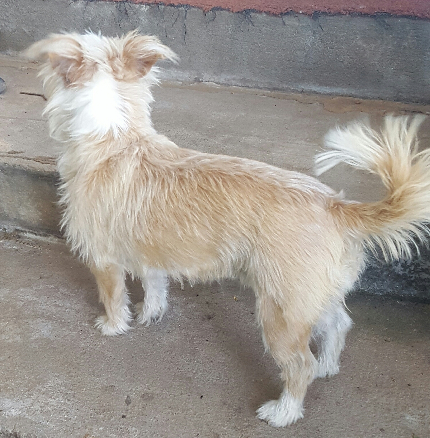 Gypsy came into care when her elderly owner had to go into a care facility. She is fretting a little and it has made her somewhat anxious. She is used to an indoor lifestyle and would suit an older owner or couple. She loves nothing better than to be where ever you are and she also loves to go for a walk. Gypsy is a little timid at first meeting but definitely warms up over time. It would be an advantage if potential new owner take the time to meet Gypsy so we can ease the transition to her new home. Being an older dog, she has had some training. She will sit on command and will make an effort to help you pick her up by giving a little jump into your arms. She is not a ravenous eater and prefers to browse all day. She is not food defensive and is fine with other dogs and children. She does not like cats and would likely chase them.