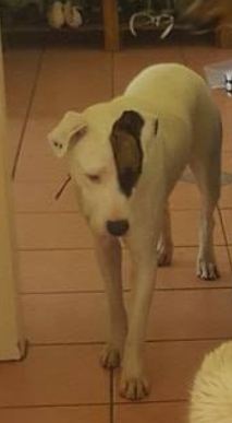 He is a gentle boy and gets on well with other dogs. He loves the water and he is a possible pit bull x bull arab.