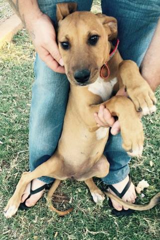 Jemma is a pretty girl with her white chest and toes – she is possibly a Vizsler or Mastiff X so we think she is going to be a larger sized girl.