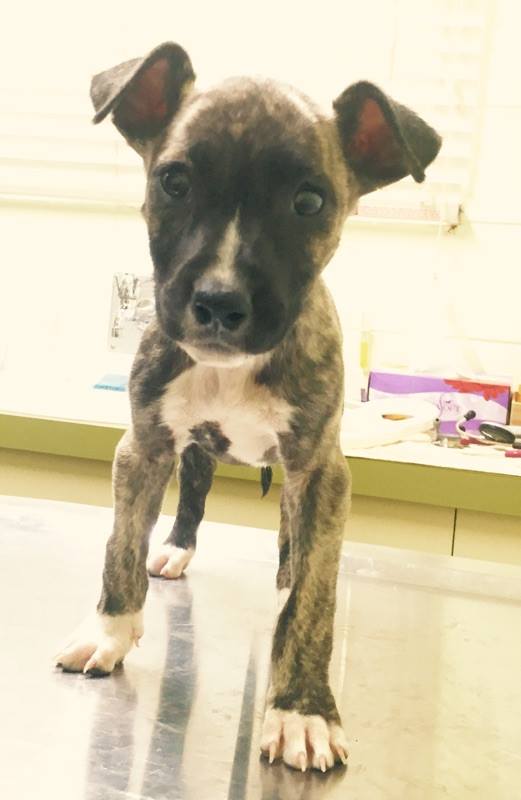 Meet Cola! She is just super cute – her coat is an unusual shade of grey brindle but the white contrasts really make her so pretty.