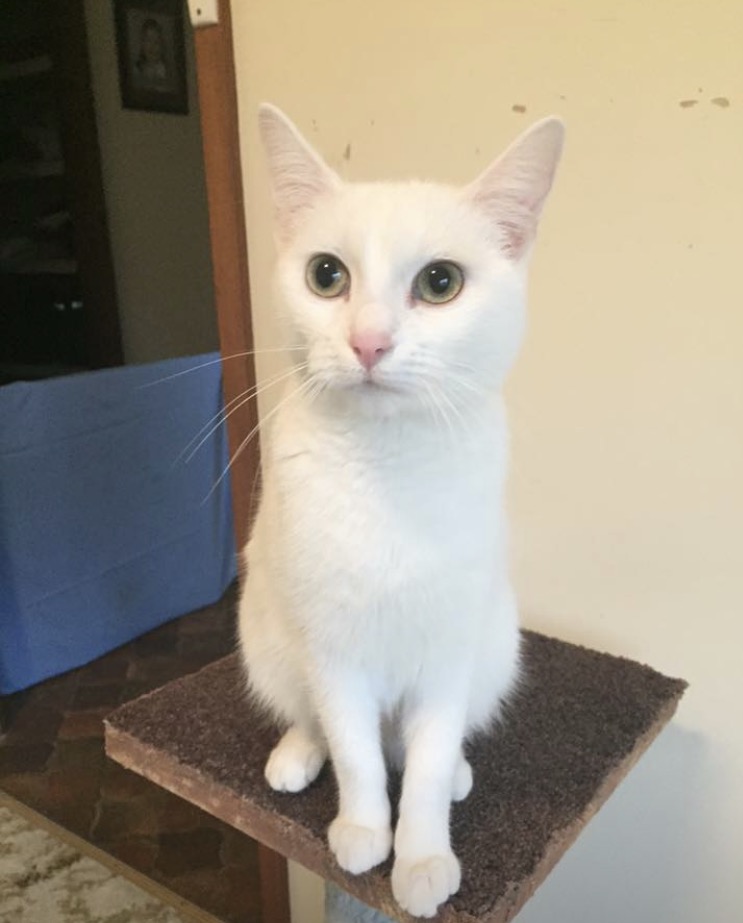 Our Chloe (Mummy cat) is searching for a home of her own. Still a baby herself she needs a loving home that can offer her lots of love. She loves to smooch and purrs all the time. Such a gentle girl. She is pure white so she must be an INSIDE ONLY cat, also Chloe must be the only animal as she does not like others around her. If interested in adoption or foster please pm our page
