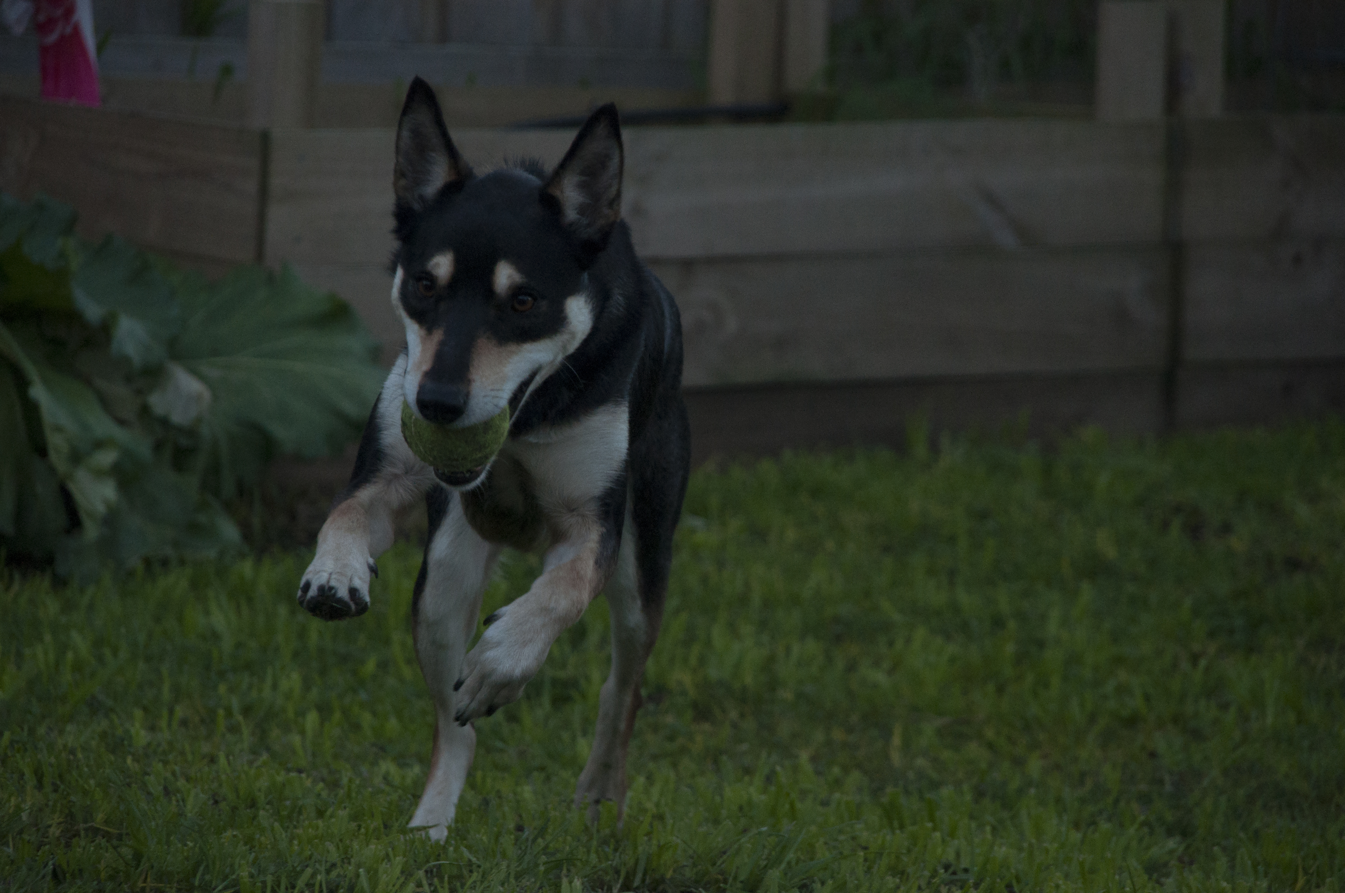He loves to chase tennis balls and he has been learning to fetch a Frisbee also. He will require ongoing training with his walking skills as he does like to pull, but is improving everyday. He is currently walked with a Halti and he does stop pulling once the excitement of getting out has warn off! Rusty knows how to sit, stay and leave a treat, even if it is left on his paw!! His party trick is that he only takes the treat when you say the number 3 :D