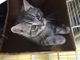 Cyril is a playful and outgoing kitten who also loves the attention of humans and other cats/kittens. He loves to wrestle with his brother Squirrel and enjoys his company.