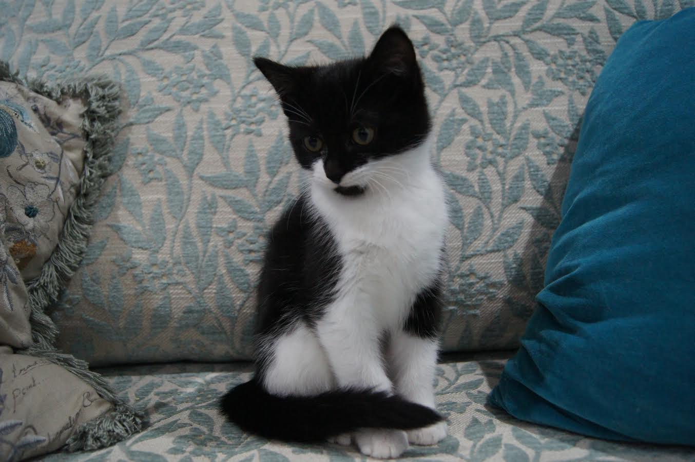 Being a Tuxedo cat, Elie is named after couture fashion designer Elie Saab. She is quite glamorous and if you are looking for an easy-going kitten... look no further than Elie! She never misses her afternoon nap on her blanket, or the couch, or on the hammock by the window where she won't miss any gossip. Out of her siblings, she is laid back, quiet gal who waits for you. She is cat friendly and loves to run and play with her siblings, mum and other fosters. Elie could become a true lap cat because of her beautifully calm and gentle nature.