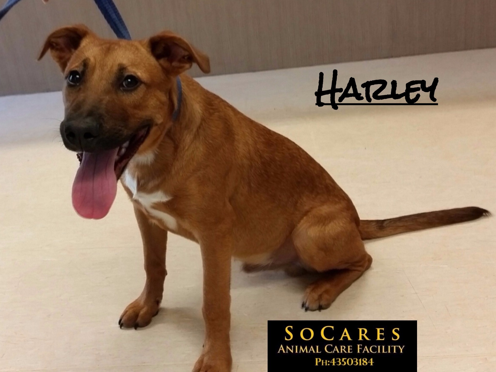 Harley is a typical, adorable pup. He really is a good looking boy who is energic and friendly. Harley currently shares his enclosure with his mum and they get along well. Harley needs guidance regarding walking on a lead as he gets super excited at the thought of going for a walk. Harley responds well to treat training, so with some patience and direction, this young boy will make a wonderful family fur member.