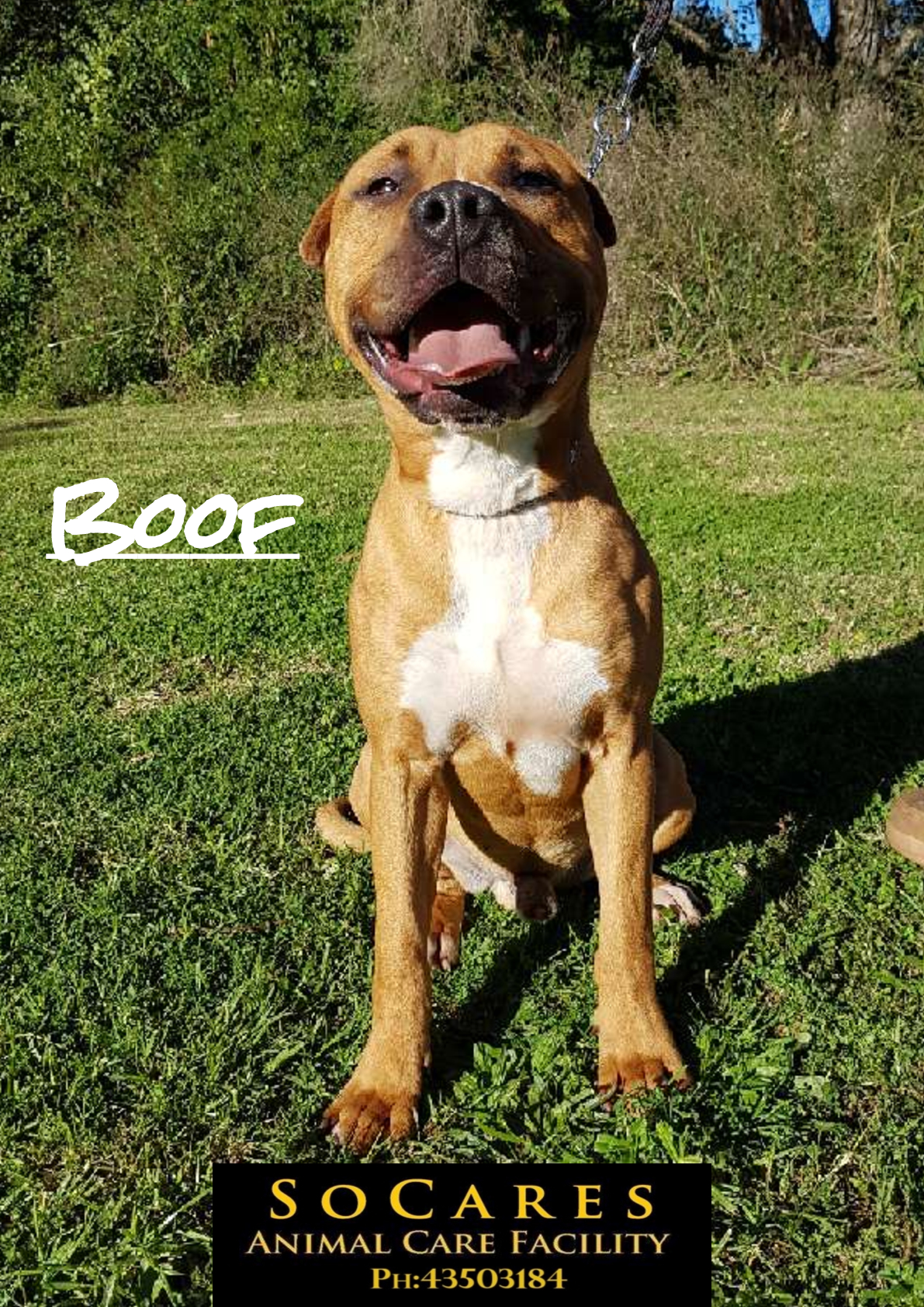 Boof is an adorable pup. He loves humans and lots of cuddles. Boof loves to be out and about. While on his walks if he comes across a puddle of water, he just has to get in it. Boof appears to be dog friendly.