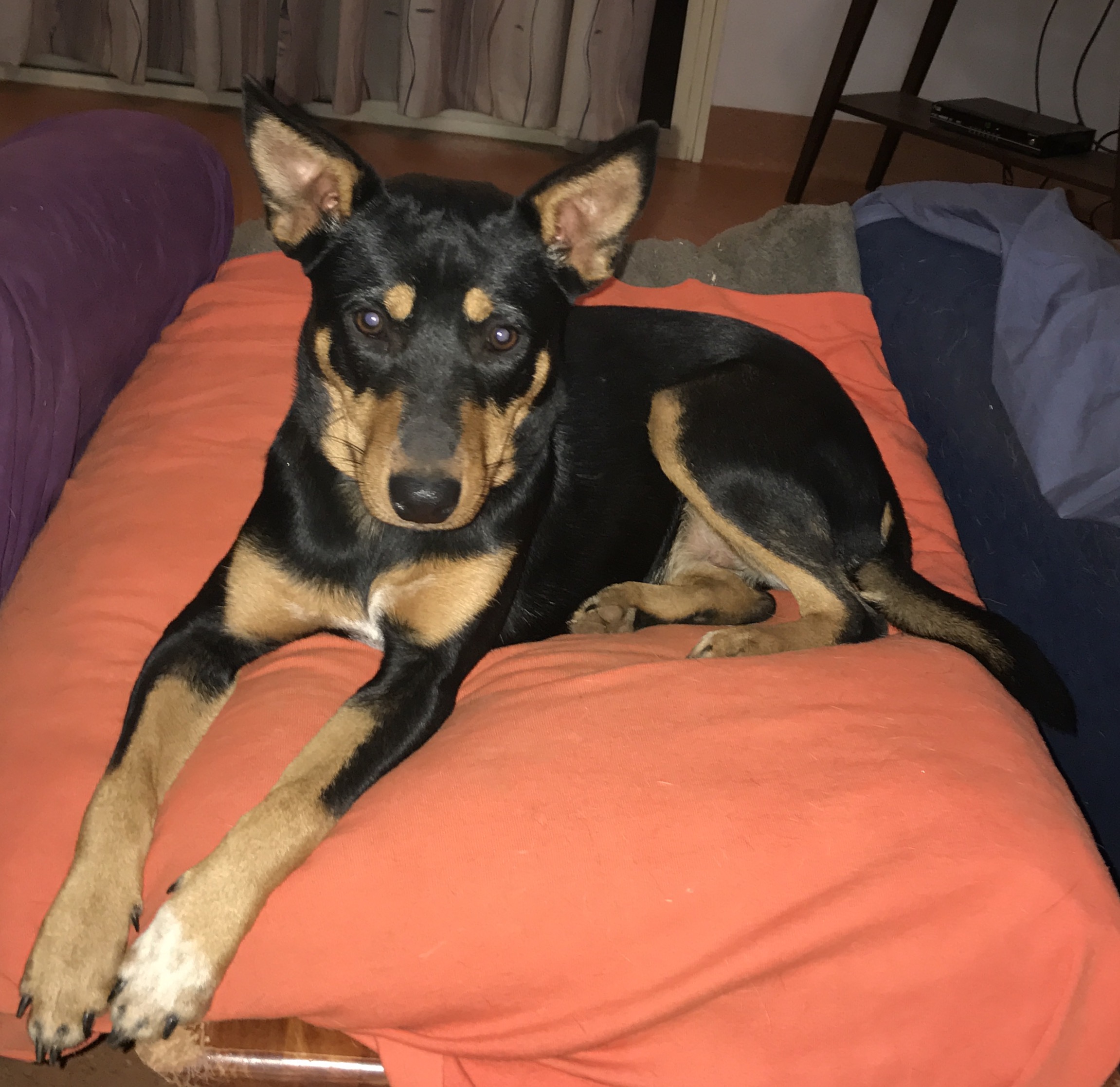 Jamaica is a great well-socialised little dog. She is terrific with people of all ages, especially fond of children and gentle with them. She is on the smaller side of medium, weighing in at only 14 kg, and plays sweetly with her puppy mate Arthur, but also enjoys games of chasey and dog wrestling with the bigger dogs in the crew.