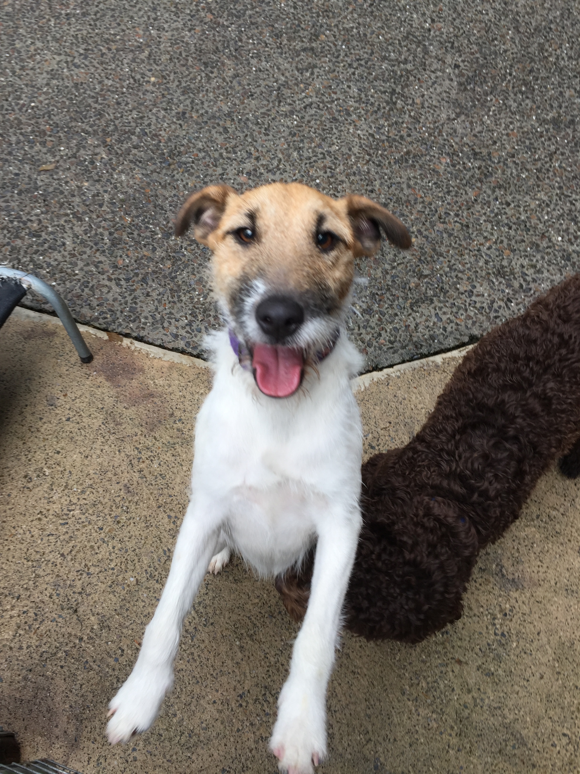 Foster mum said I used to be very naughty with jumping up and nipping at faces/hair. I still like to leap around when I get excited but I’m learning that jumping on you isn’t appreciated and nipping makes my people cross. I’m getting good at restraining my over enthusiasm but just to be safe no toddlers or babies please as I might knock them over. I am good with kids, just too enthusiastic. I probably might pinch food from their hands too so I would need to be watched at that time.