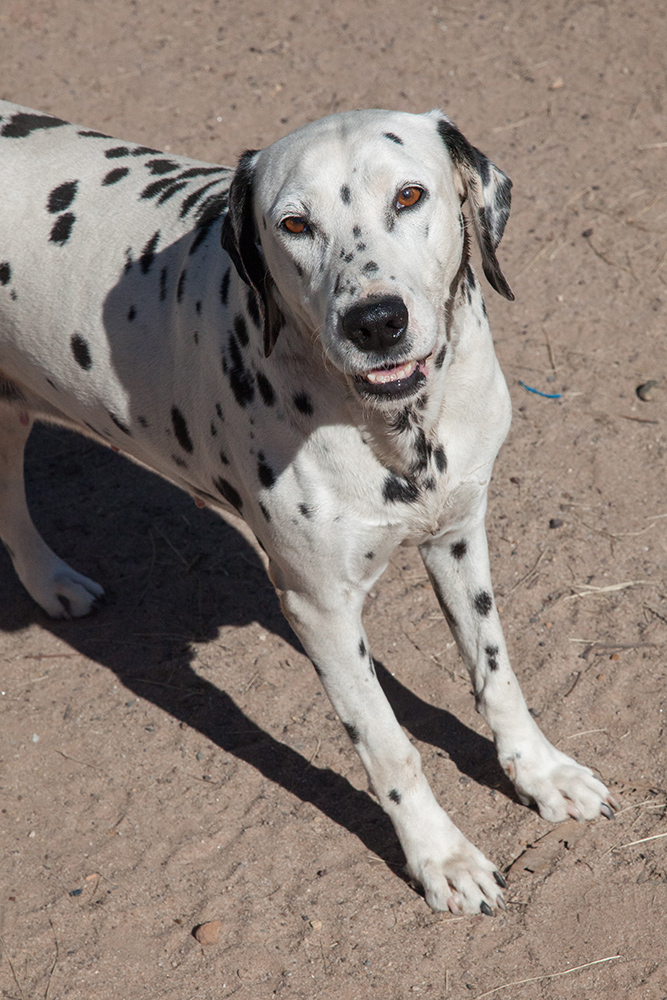 Misty is a gorgeous Dalmatian with special needs. Her problem is that she has the occasional seizure. She has had two that we know of since she came to Happy Paws Haven and her old owner said that she had had one or two a year. Our observation is that she gets wobbly on her feet, stubbles, saliva at the mouth, rests for less than about 10 minutes or so then returns to normal playing with the other dogs. We have started her on a drug prescribed by our vet and she has not had a sign of one since. She has a lovely quiet gentle nature, affectionate, a little food possessive with other dogs but not humans, and would make a great companion for an older or retired person. She has just been desexed and is now ready to go to a new home.