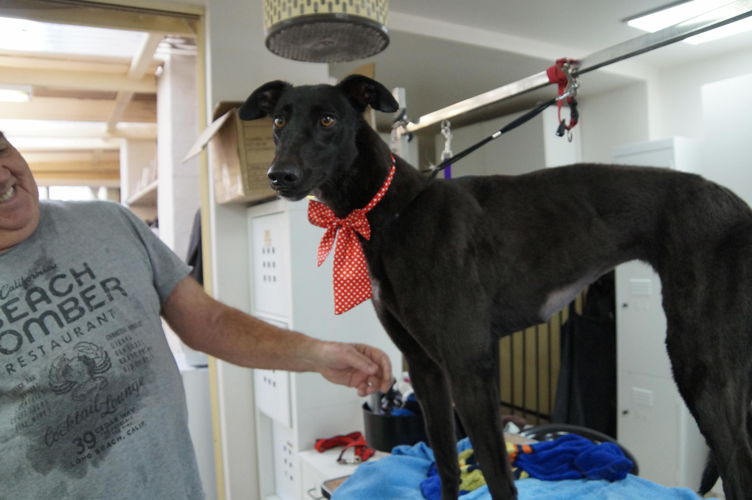 When you see Bella’s bright eyes light up her dark face, you’ll see why we think black greyhounds are the most under-rated! Bella is clever and expressive, with her own special language for telling her humans what to do. She can ask for breakfast (whimper, circling her bowl), for a walk (whimper by the door), or for a toilet break (whimper, pacing back and forth). She also likes trying to tell her humans when it’s playtime, and gets adorably huffy if they don’t comply! Bella may like giving instructions but she’s also very gentle and sweet. She adores a cuddle, a tummy rub or a scratch on ears and neck, and always stays close by her human when she’s walking.