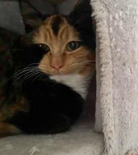 KoKo is a quiet mummy cat who likes an ear rub! She is still coming out of her shell after being surrendered to us with her kittens. Once she knows you and has settled in she will really enjoy your company.