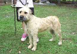 Cheeky is a 2 year old wolfhound x. She's a wheaten bitch, with a superb temperament.