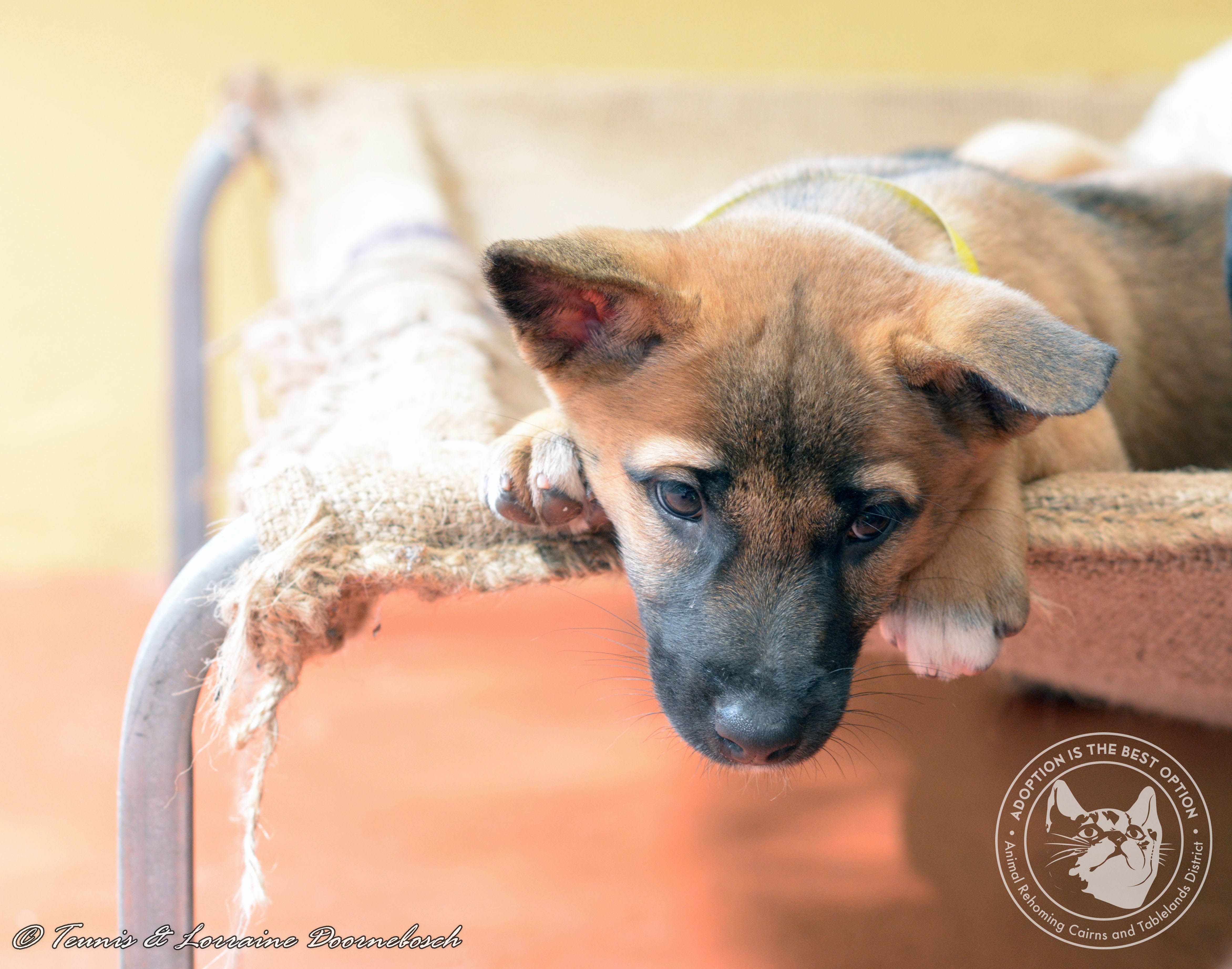 Born around 17th May and close to having all vet work completed so she can go to her new home. Jindi is a very confident and clever little girl. We believe she will be a medium size mixed breed but it's hard to know as we have no history or knowledge of her parents. All vet work will be done and includes desexing, microchip, vaccinations, flea and worm treatment.