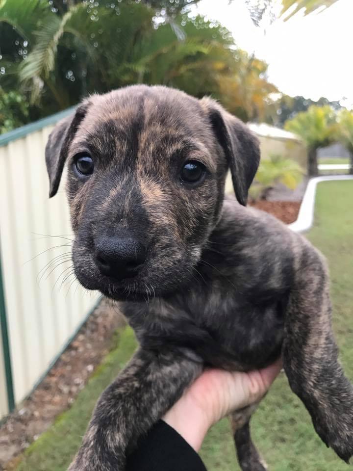 Sumo is the big, strong & gentle giant. He loves to play with his siblings but loves cuddles too. Sumo is a big playful boy who prefers to play with the big boys. Gentle with kids and can be a little shy at times but loves a good cuddle with anyone who sits still long enough. He will let you know if someone new is around and is the real boss with his siblings. He is working on his house training. Good with cats. A real lovable character. Sumo will need to be adopted to a home with another dog of the opposite sex. Sumo is located in Ningi, next to Caboolture, QLD.